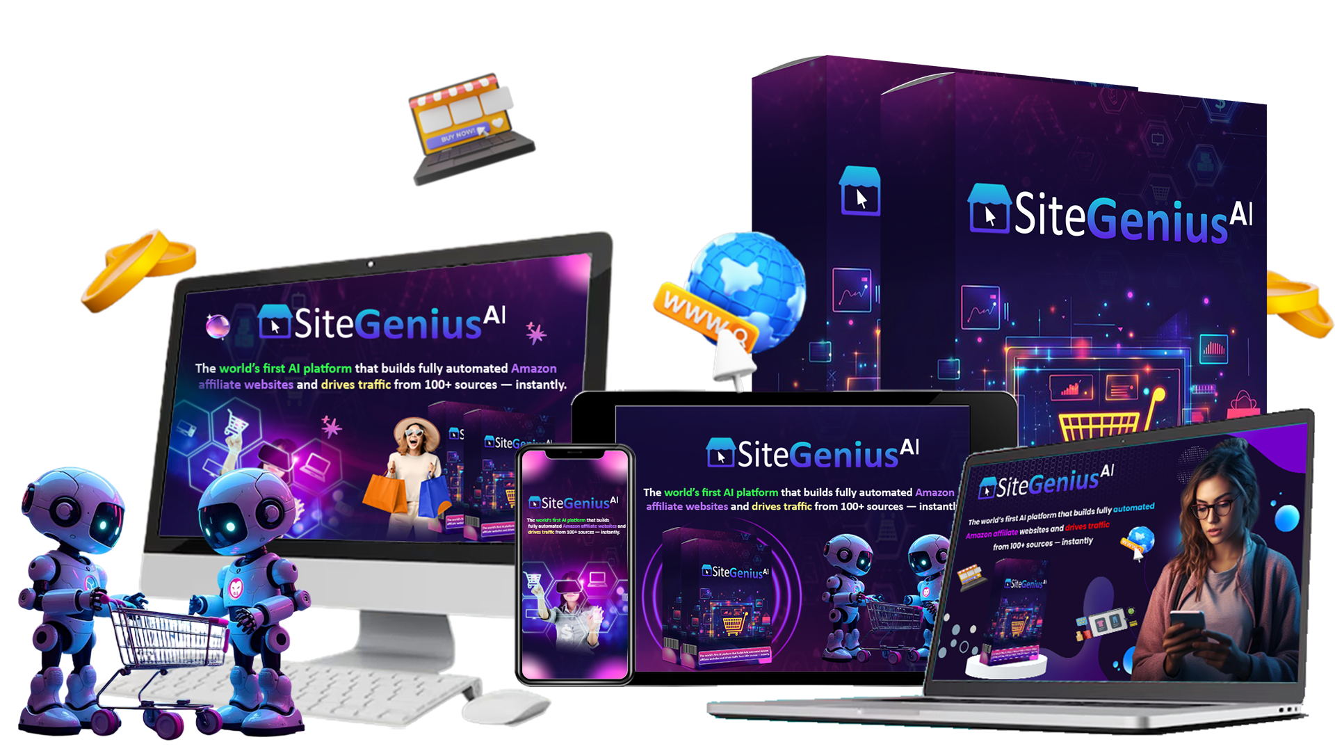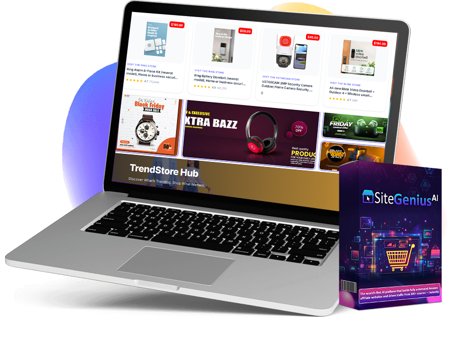 The only A.I app on the market that builds 100+ Amazon affiliate sites, fills them with content, and blasts them to 100+ traffic sources — all on autopilot.