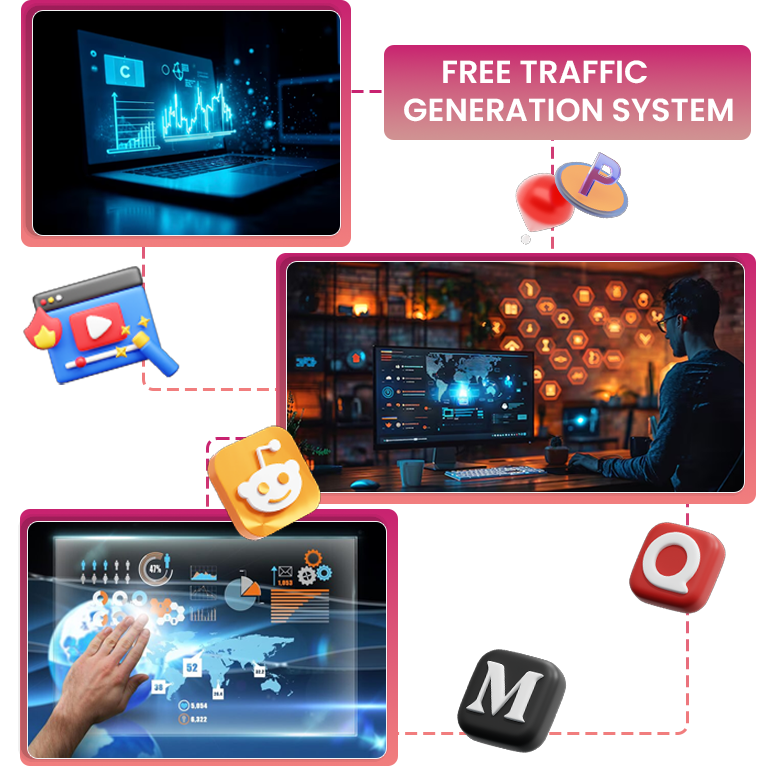 100+ traffic source syndication. Auto-posting to Google, Pinterest, YouTube, Reddit, Medium, Quora, and more.