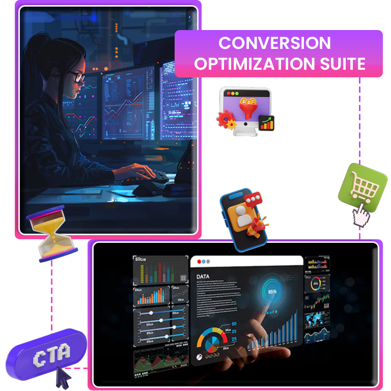 Exit-intent popups. Countdown timers. Social proof. Scarcity indicators. A/B testing. Every conversion trick built in.