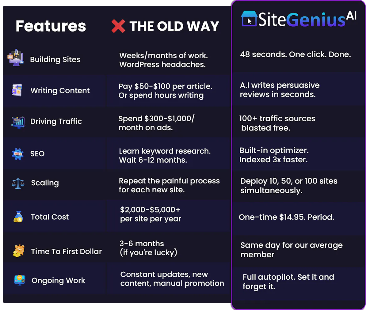 The Old Way vs. The SiteGenius AI Way